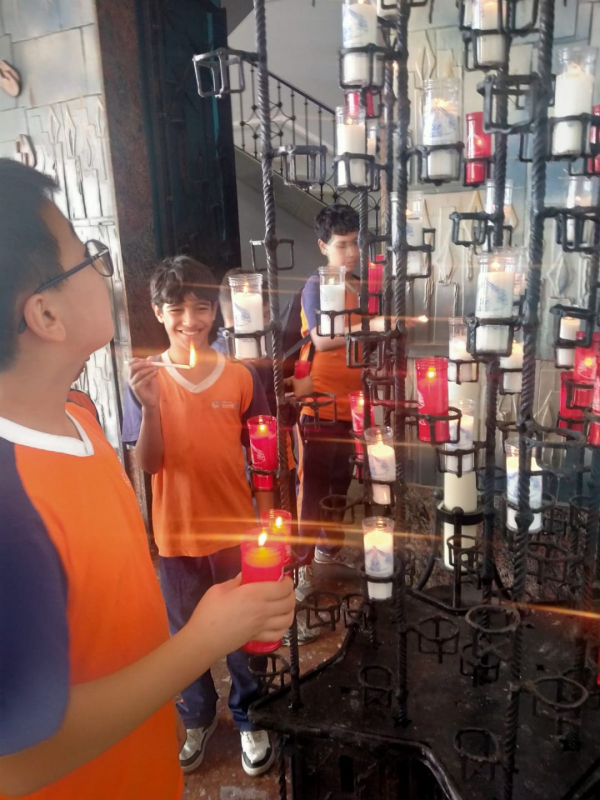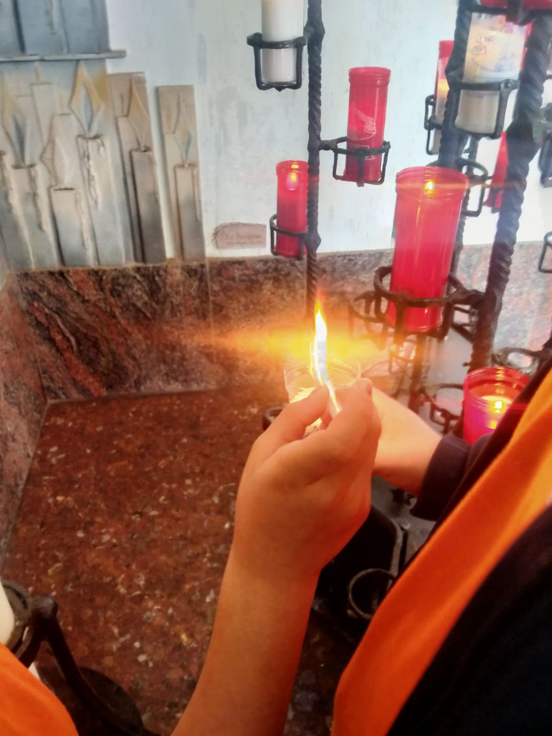 Després de dinar, l’alumnat va gaudir d’una estona de joc amb els amics i amigues, i van encendre uns ciris a la Mare de Déu. Ja per la tarda es va continuar amb un joc cooperatiu, que va posar a prova el treball en equip i la comunicació entre tots.